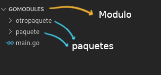 En go puedes considerar un paquete como todos los archivos que contenga un directorio y un modulo como una colección de paquetes. Para usar el código de un paquete necesitamos importarlo, sin embargo, en Go no existen las importaciones de módulos relativas. Antes de Go 1.8, para importar paquetes (no había modulos) era necesario usar la ruta absoluta, considerando como base la ruta a la que apuntaba la variable de entorno $GOPATH o. A partir de Go 1.11, la manera más sencilla de trabajar con paquetes es usar go mod.