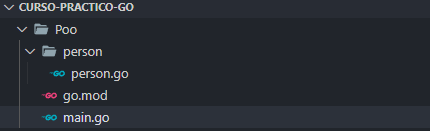 package main import ( . "curso-practico-go/poo/person" "fmt" ) func main() { // Creación de un objeto "Persona" persona := Persona{} // Establecer el nombre y la edad a través de los métodos de encapsulamiento persona.SetNombre("Carlos") persona.SetEdad(26) // Obtener el nombre y la edad a través de los métodos de encapsulamiento fmt.Println("Nombre:", persona.GetNombre()) fmt.Println("Edad:", persona.GetEdad()) }- Archivo person.go